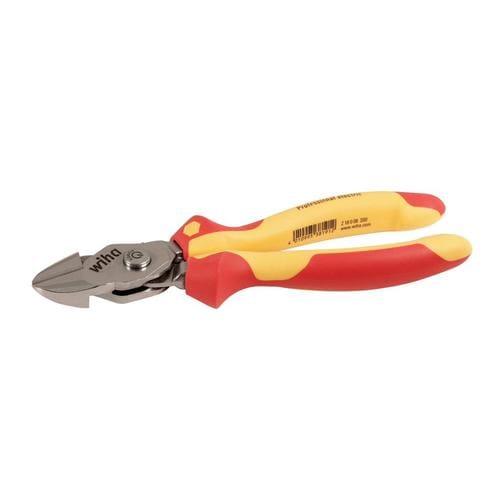 WIHA insulated BiCut SuperCut compound 8-in cutter, brushed finish Insulated industrial BiCut SuperCut 8-in (200mm) long Each tool individually tested at 10,000 V AC and approved for 1,000 VAC, meets IEC 60900 specification Drop-forged from high quality special C70 tool steel, individually high frequency induction hardened to 64HRC Cuts a wide range of materials from copper to extremely hard piano wire Up to 50% less hand strength required in power mode Backed by the WIHA no hassle guarantee