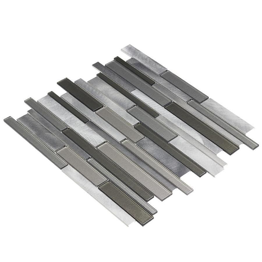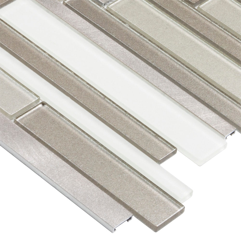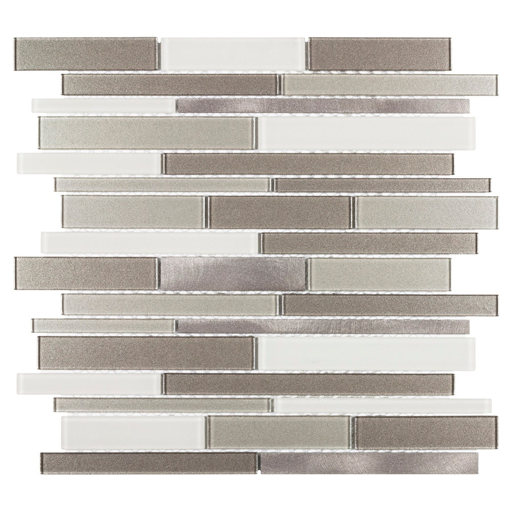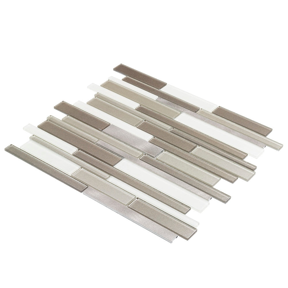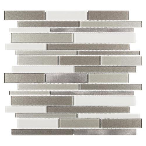A sleek mosaic of crystal glass and metal in a linear pattern, this 12-in x 12-in tile brings shimmer and dimension to interior walls. The multi-finish beige and white palette delivers a modern accent ideal for kitchens, fireplaces, and backsplashes.