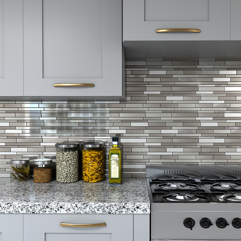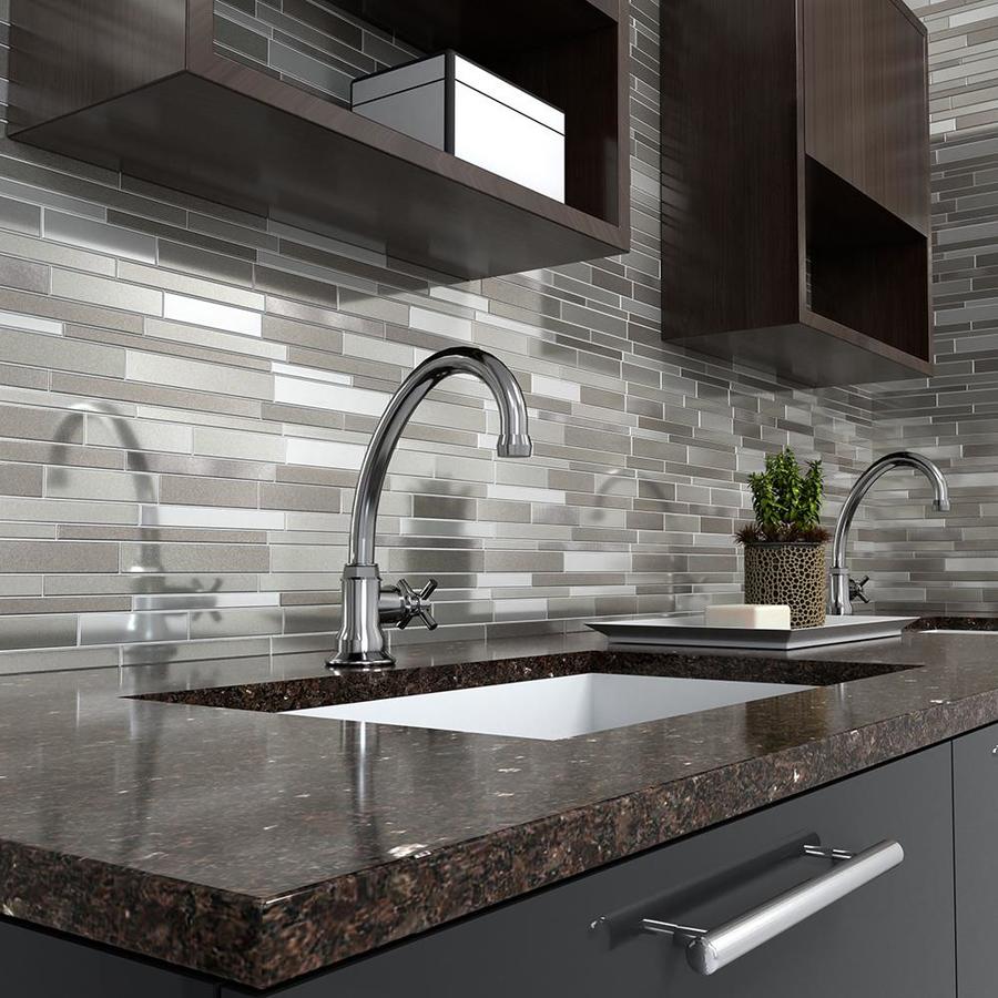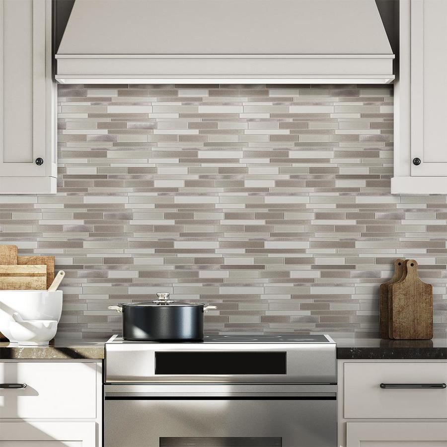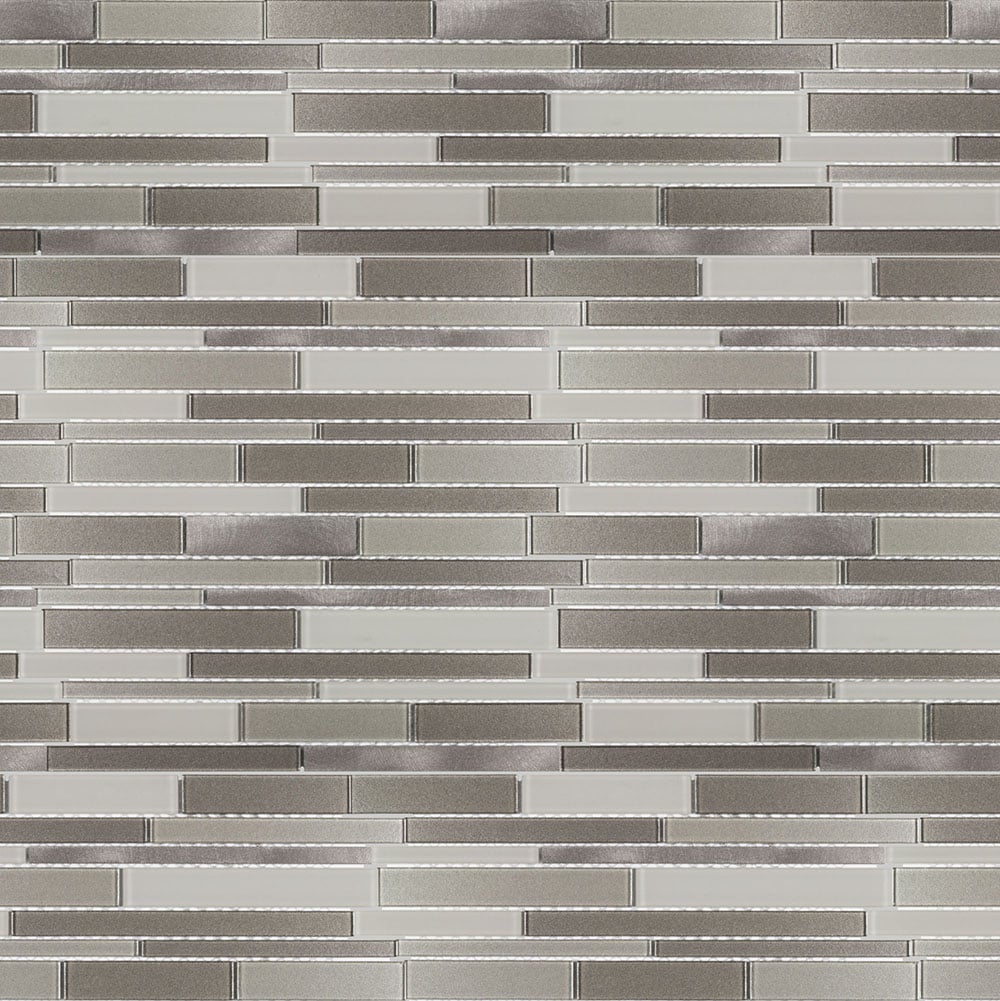 A sleek mosaic of crystal glass and metal in a linear pattern, this 12-in x 12-in tile brings shimmer and dimension to interior walls. The multi-finish beige and white palette delivers a modern accent ideal for kitchens, fireplaces, and backsplashes.