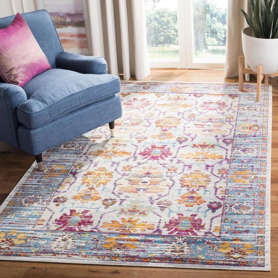Safavieh Crystal Thomas 3 x 5 Cream/Teal Indoor Distressed/Overdyed Vintage Throw Rug