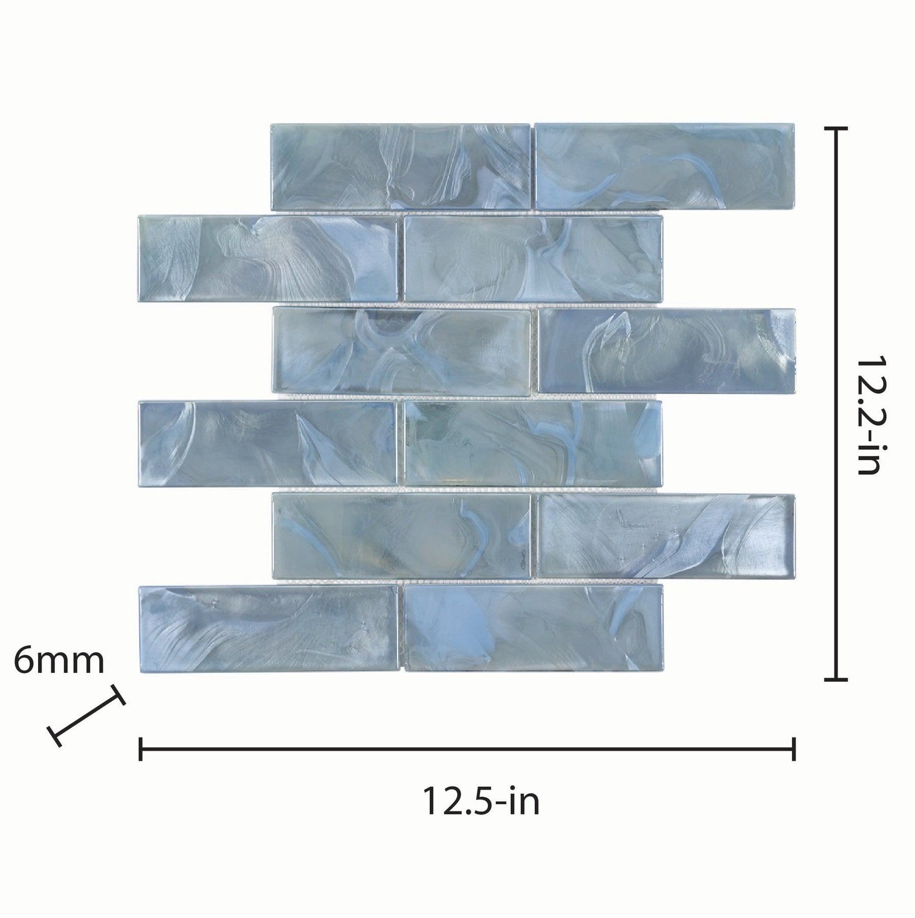 Blue Glossy Glass Brick Mosaic Wall Tile, 12" x 12"