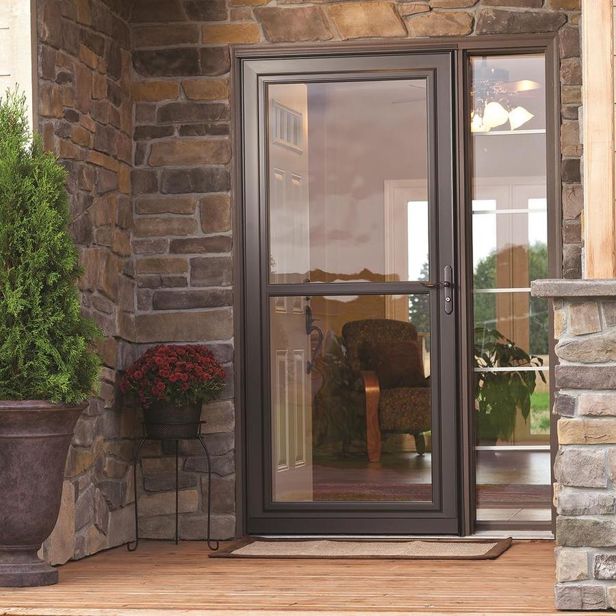 Retractable Screen Away® design converts storm door to screen door, hiding the screen in a cassette at the top of the door