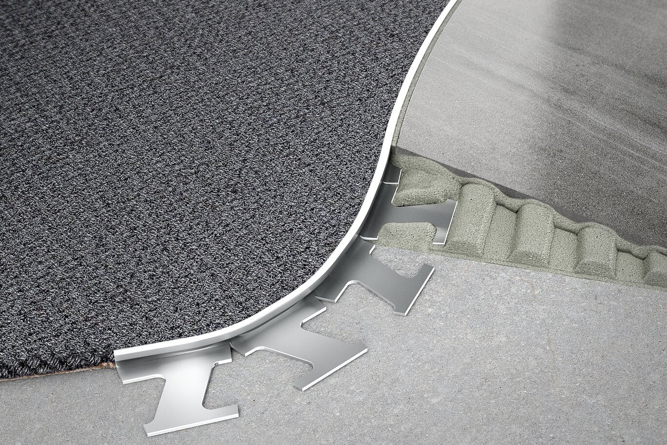 SCHIENE draws a refined, architectural line between surfaces—crisp and quiet, yet undeniably polished. The satin anodized sheen and ultra-slim reveal create a tailored edge that flatters stone, porcelain, or carpet. Curve it softly around organic layouts or keep it razor-straight for a gallery-clean perimeter. It’s the finishing touch that makes everyday thresholds feel luxurious and intentional.