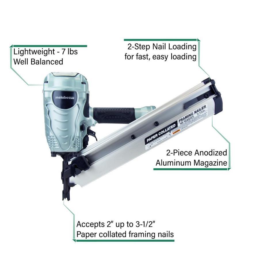 FASTENERS: Accepts 2-in up to 3-1/2-in paper collated framing nails