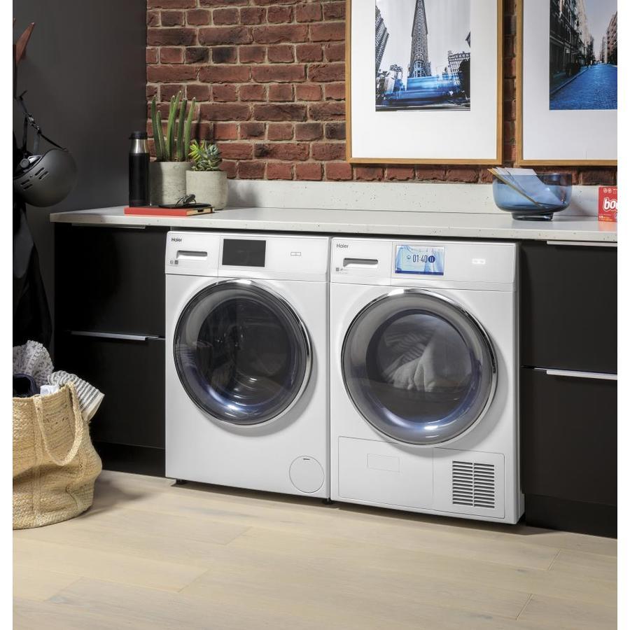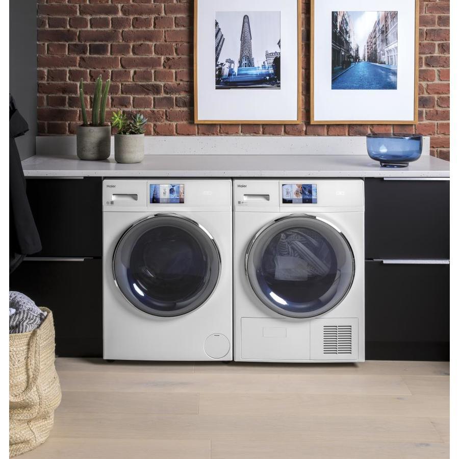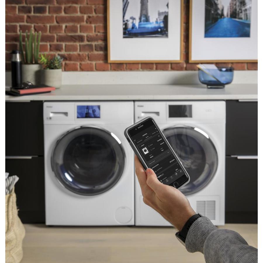 Compact 24” width with large capacity - unique size for installation flexibility and large capacity to do laundry less often Touch-sensitive controls - simple, intuitive, LCD display with touchscreen technology makes operating this washer a breeze Over 2000 cycle selection combinations - with thousands of available cycle modifications, this amazing washer puts a whole new spin on doing laundry Embedded WiFi - features an updateable operating system and enables you to monitor and control your laundry from anywhere Quick Wash - need to wash and wear; the Quick Wash option lets you clean lightly soiled items in a hurry Stain removal option - clean 5 of the most common stains with preprogrammed settings that modify any cycle to help remove mud, grass, tomato, wine, blood Steam - penetrates deep into fabric fibers, loosening stains like tomato and grass, yet protecting your fabrics Plugs into a dryer OR the wall - washer plugs into Haier 24-in Ventless Condenser or 24-in Vented dryer or properly installed 120-Volt wall receptacle for easy installation ENERGY STAR® qualified - meets or exceeds federal guidelines for energy efficiency for year-round energy and money savings