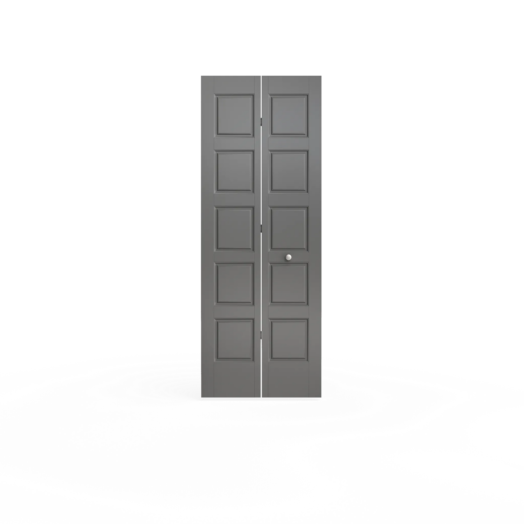 Space-saving Riverside bifold door from Masonite features a molded composite 5-panel design in a prefinished Blue Heron color. Lightweight hollow-core construction makes installation easy, and hardware is included for a streamlined setup.