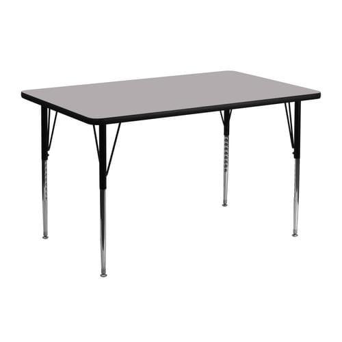 Popular Rectangular Activity Table Scratch and Stain Resistant Surface 1.125-in Thick Thermal Fused Gray Laminate Top, Black Edge Band 16 Gauge Tubular Steel Legs Black Powder Coated Upper Legs and Chrome Lower Legs Legs Adjust in 1-in Increments Self-Leveling Nylon Floor Glides Recommended Grade Level: 1st Grade - Adult Recommended Seating Capacity: 2 Adults; 4 Children