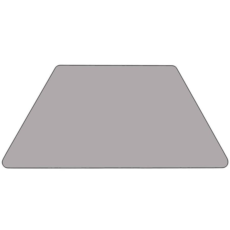 Collaborative Trapezoid Activity Table Table can be used alone or grouped together for cooperative learning Scratch and Stain Resistant Surface 1.125-in Thick Thermal Fused Grey Laminate Top Black Edge Band 16 Gauge Tubular Steel Legs Black Powder Coated Upper Legs and Chrome Lower Legs Legs Adjust in 1-in Increments Locking Casters