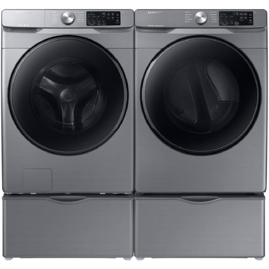 Samsung 7.5-cu ft Reversible Side Swing Door Stackable Steam Cycle Gas Dryer (Platinum)