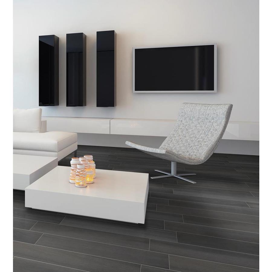 High-definition ink jet printing creates a rich and subdued wood look, with subtle movement from piece to piece