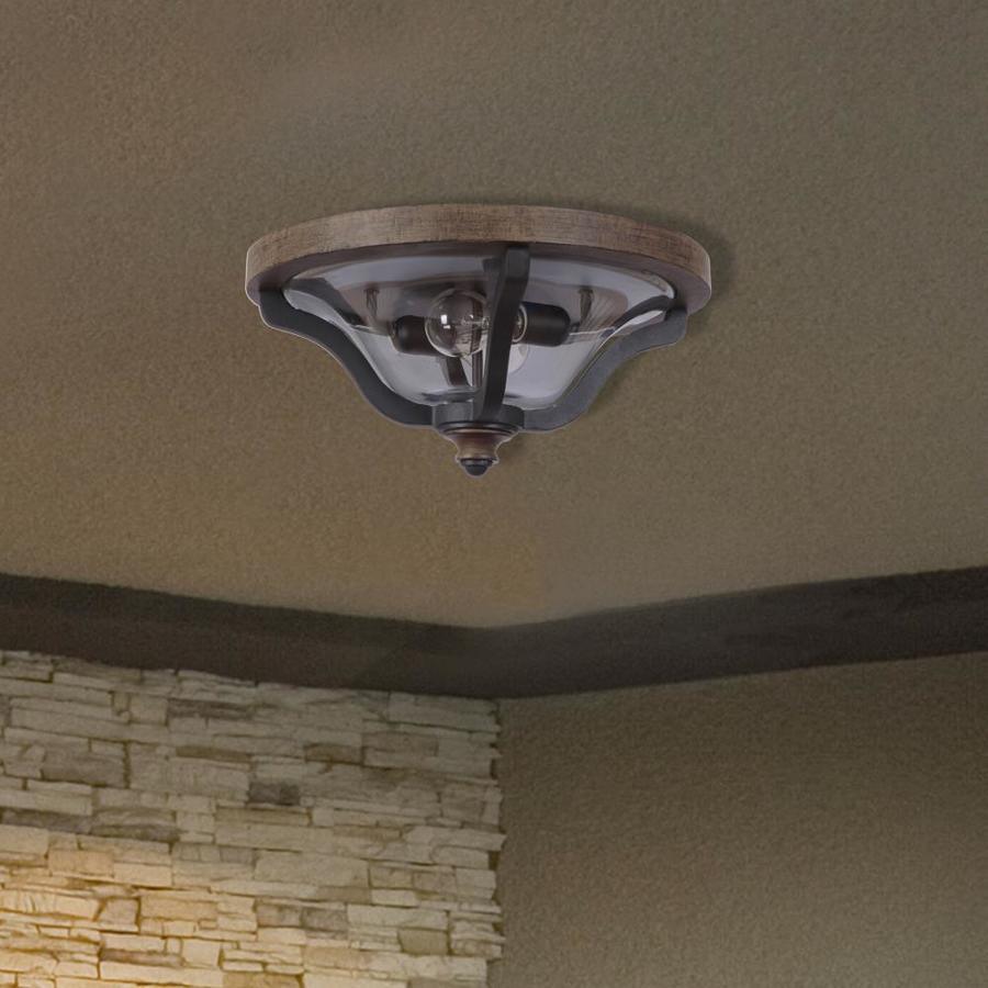Craftmade Ashwood 16.1-in W Textured Black/Whiskey Barrel Outdoor Flush Mount Light
