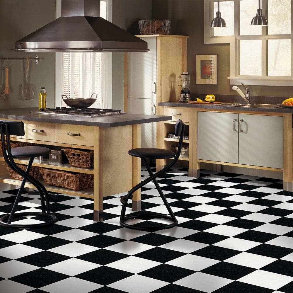 Create a bold, low-gloss black floor with Armstrong’s Stylistik II 12x12 peel-and-stick vinyl tiles. Designed for easy DIY installation over concrete or plywood, these durable tiles feature a monolithic, slate-embossed texture and simple maintenance for busy homes.
