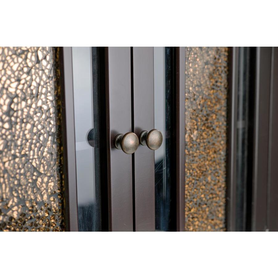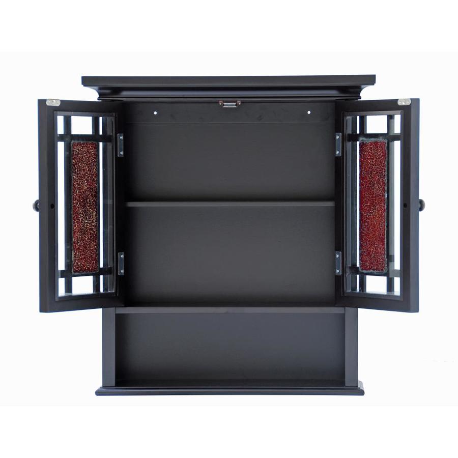 STYLISH WALL CABINET: Features a timeless dark espresso finish with amber glass mosaic doors, beveled trim, and rubbed bronze-finished knobs for a beautiful addition to your space