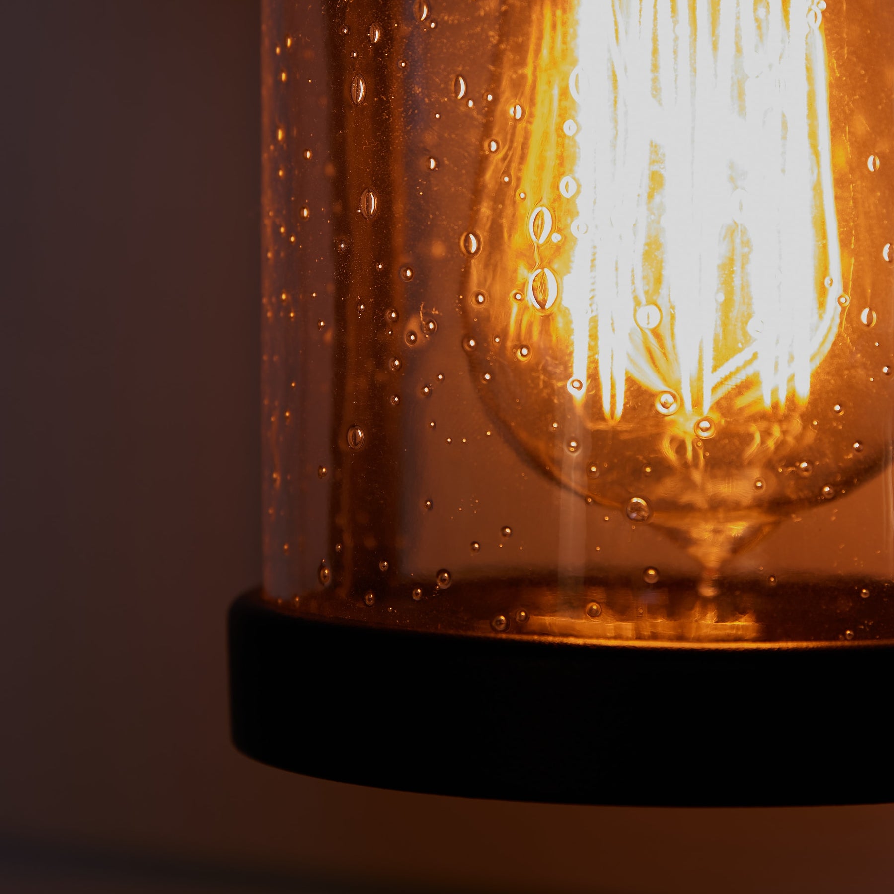 • Classic Seeded Glass: Clear seeded cylinder adds texture while protecting the bulb