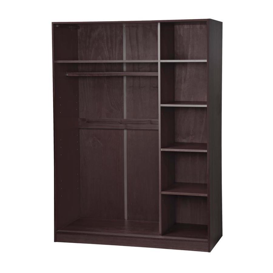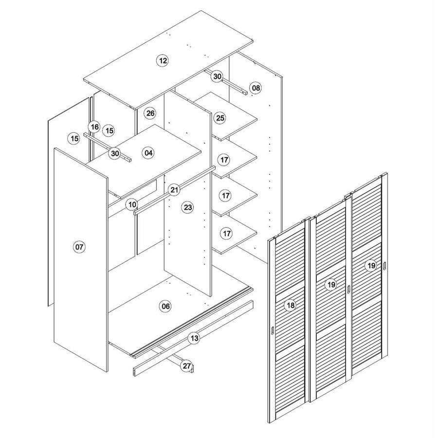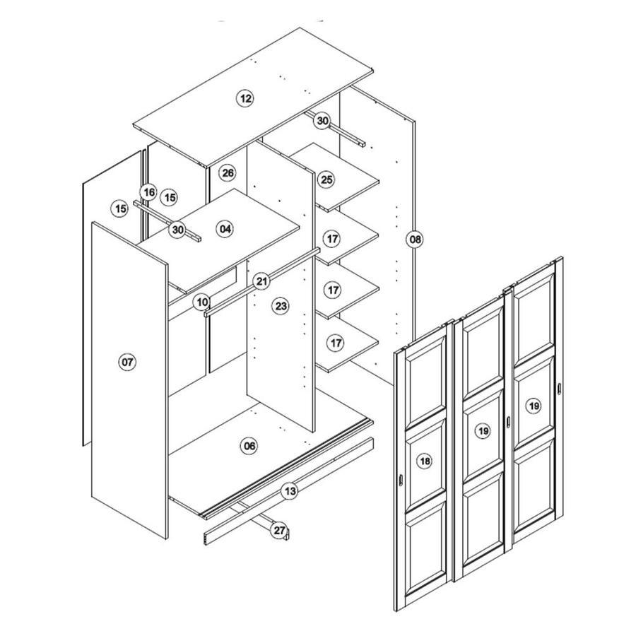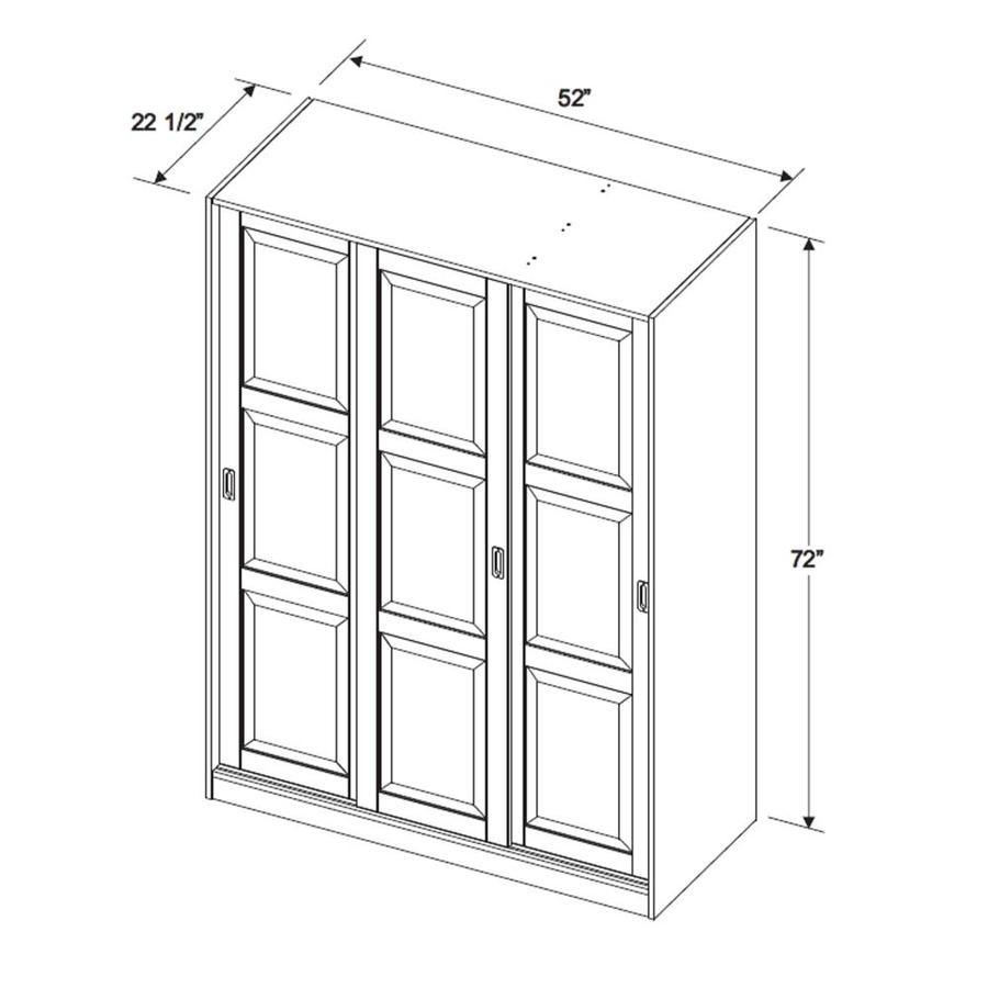 Construction:- two solid wood cross ties and two bars at the top for extra stability- three 4 mm (5/32-in) plywood back panels- top is flush with side panels to allow combining unlimited number of 2- and 3-sliding door wardrobes