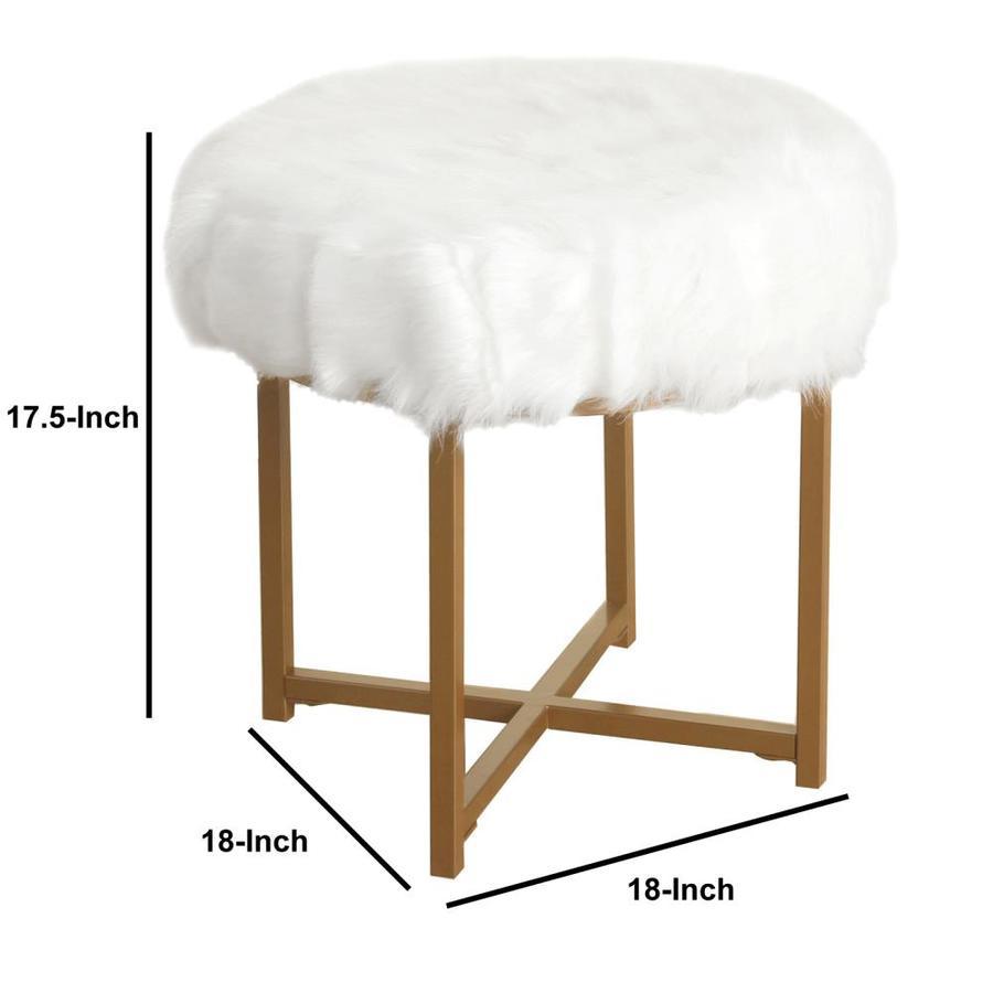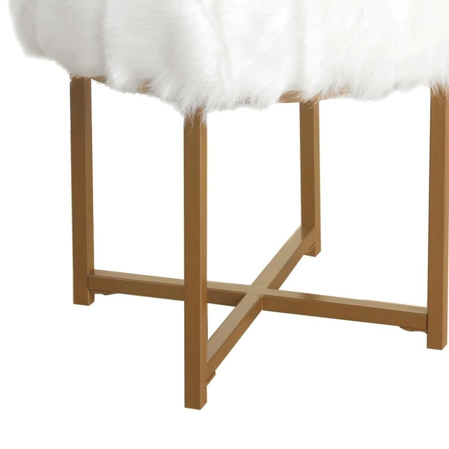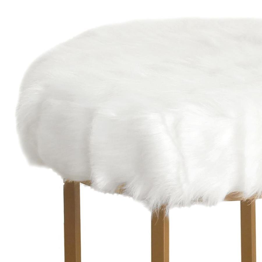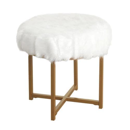 Durable metal framed stool features white faux fur upholstered seat
