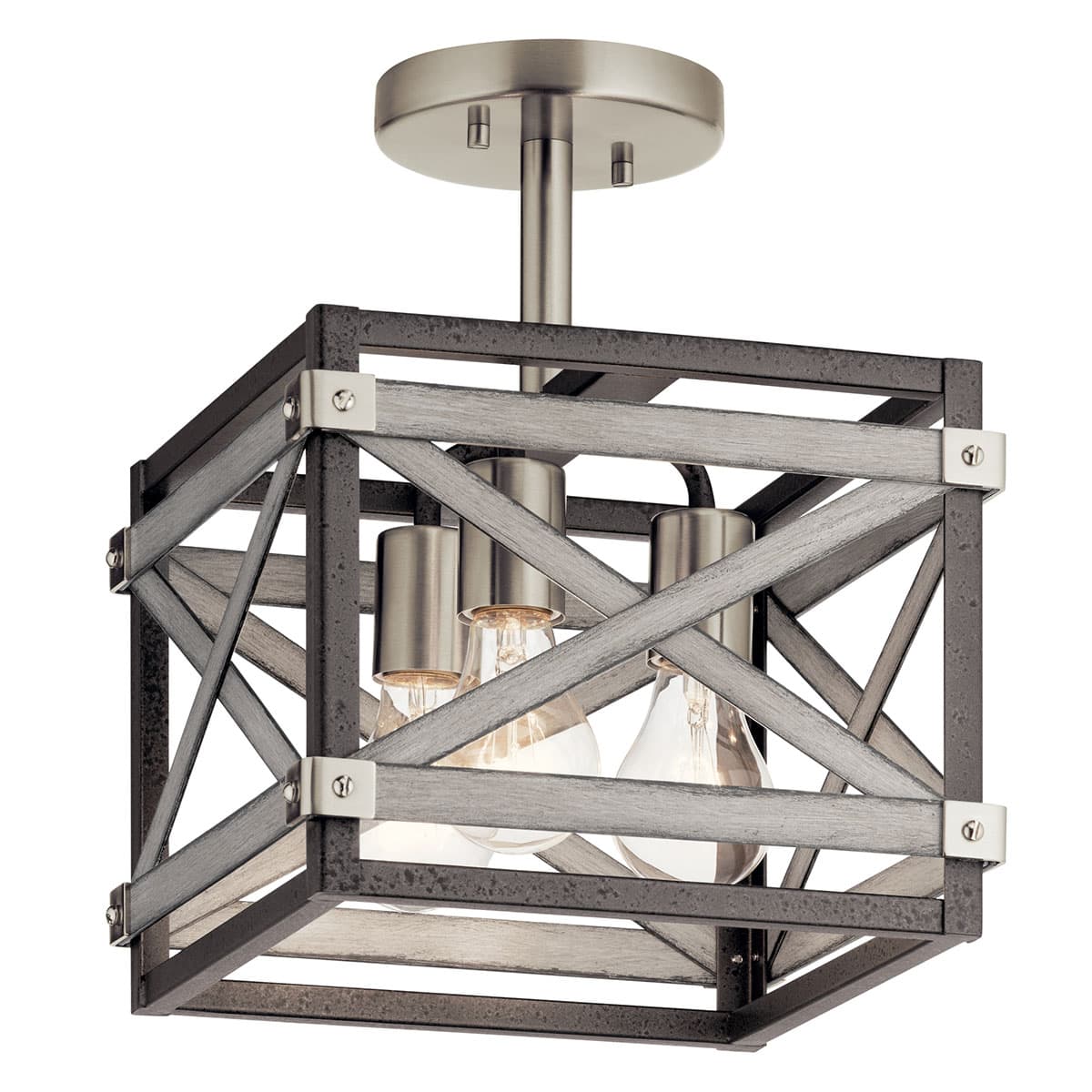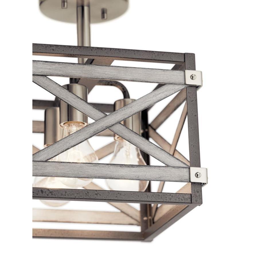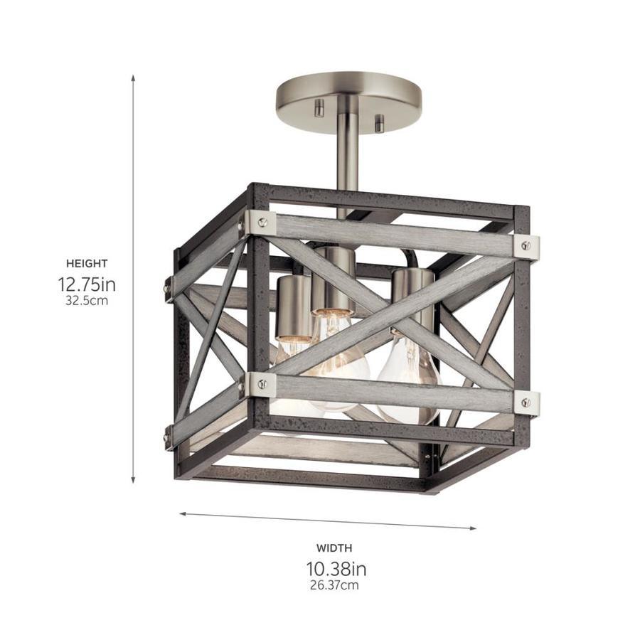 Bring farmhouse character to your foyer or hallway with the Kichler Stetton semi-flush mount. A steel, open-cage design pairs Anvil Iron with Distressed Antique Gray accents and three medium-base sockets for warm, room-filling illumination.