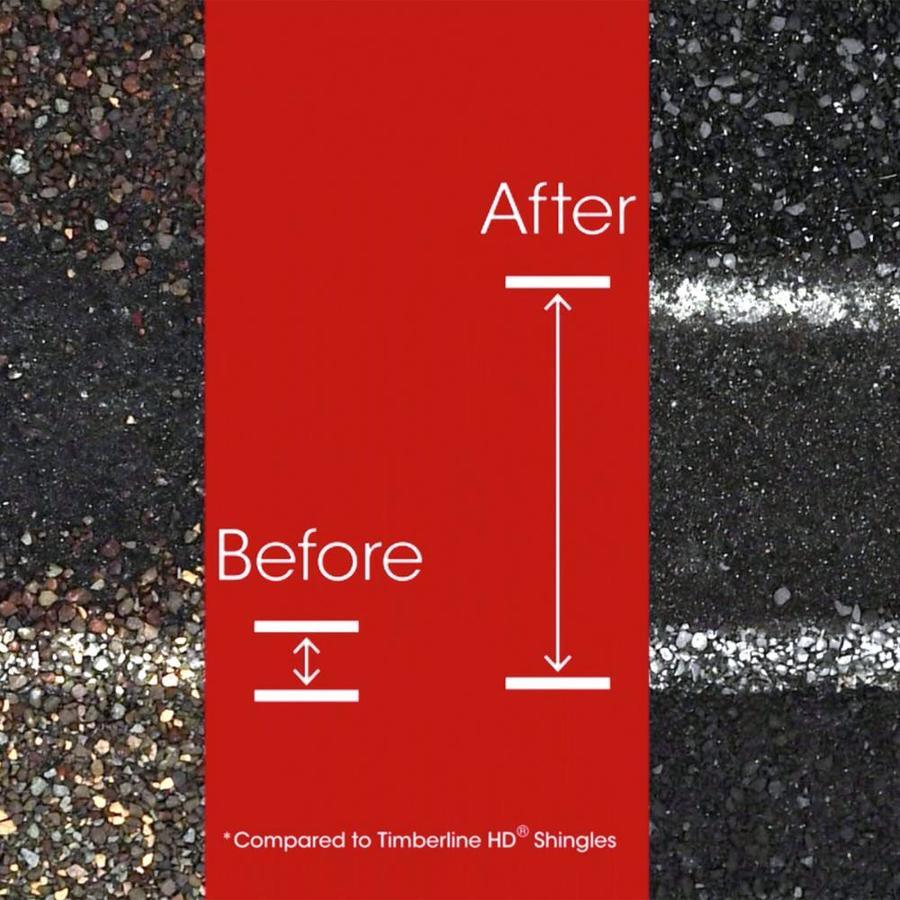 Proprietary LayerLock™ Technology mechanically fastens the common bond, allowing for a larger nailing area, up to 600% larger nailing target(compared to Timberline HD® Shingles)