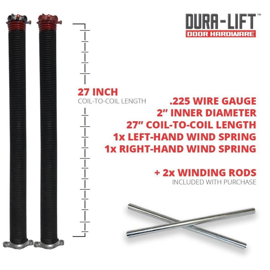 One left-wound torsion spring, one right-wound torsion spring, and 2 winding rods