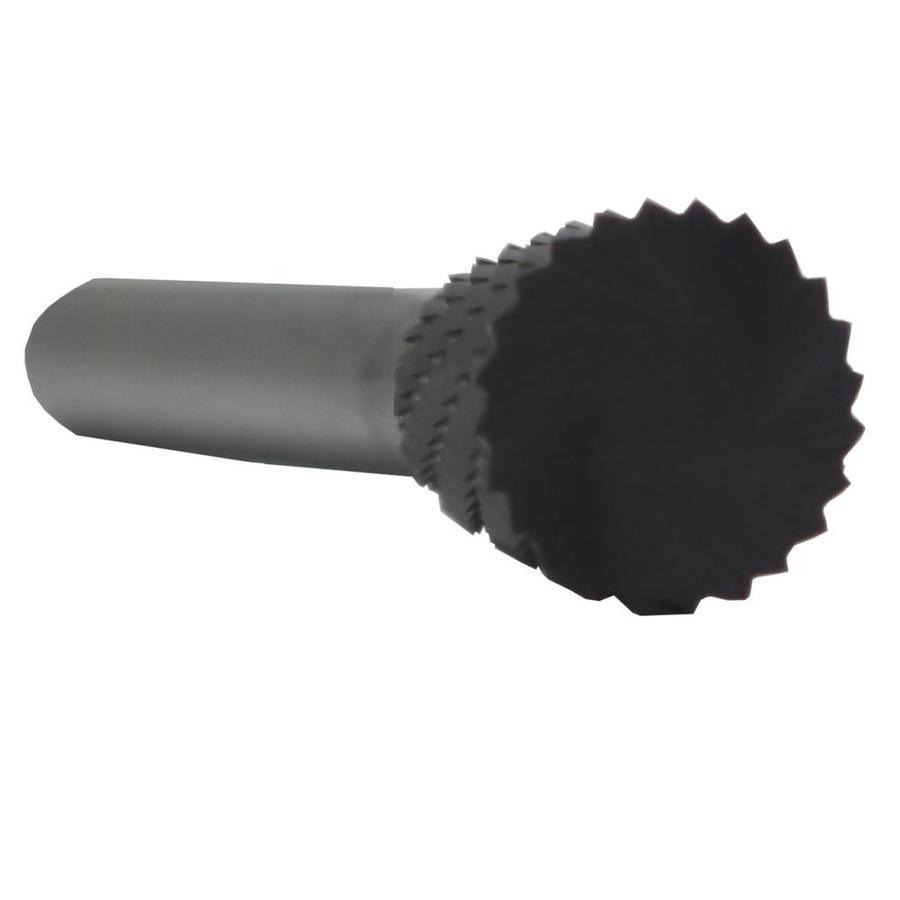 Removes material in wood, plastic, stainless steel and metals Double cut style for rapid material removal in tough applications Solid carbide tooling provide long life and faster cutting speeds Round 1/4 in. shank allow use with a wide variety of tool holding systems Inverted Cone Shape