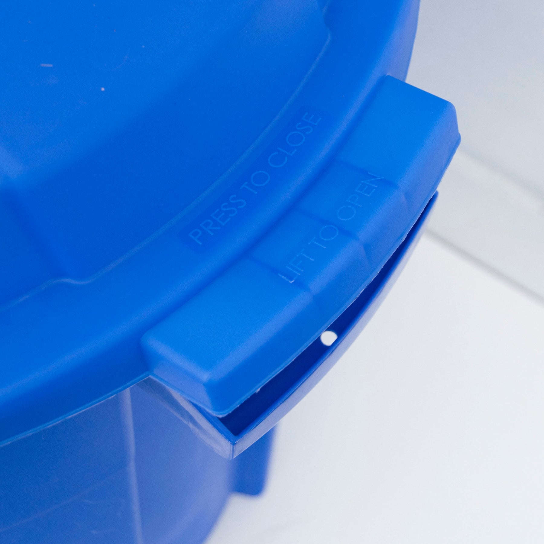 This vivid blue bin punctuates a patio or garage with confident color while quietly organizing your recycling ritual. The domed, snap-on lid and sculpted vertical paneling create a clean, architectural silhouette. Pair two side-by-side for sorting streams—paper and mixed—against a white utility wall for a crisp, modern utility zone. It’s a chic essential that elevates everyday sustainability.