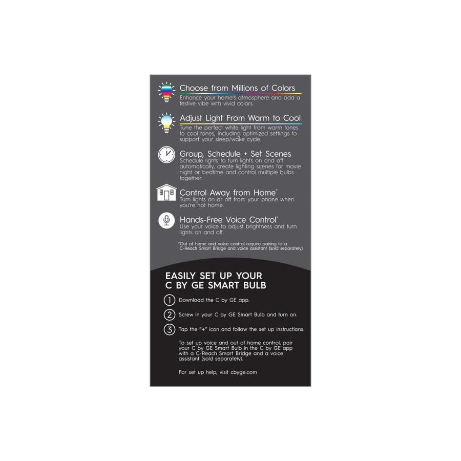 Manage your C by GE Smart Bulbs away from home: Get added comfort and convenience with the ability to control your smart light bulbs with iOS and Android apps, so you never come home to a dark house or disrupt your comfort from bed