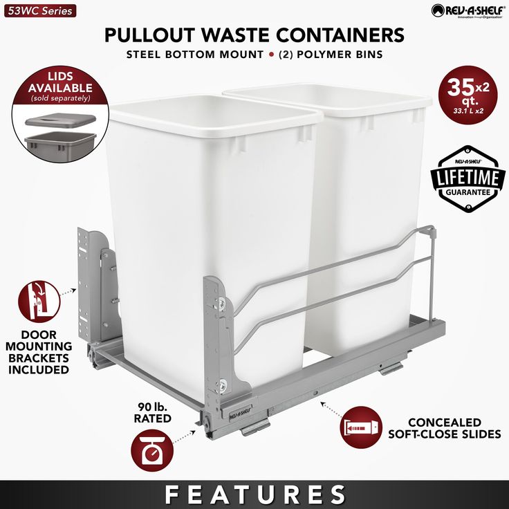 Rev-A-Shelf 35-Quart Plastic Soft Close Pull Out Trash Can