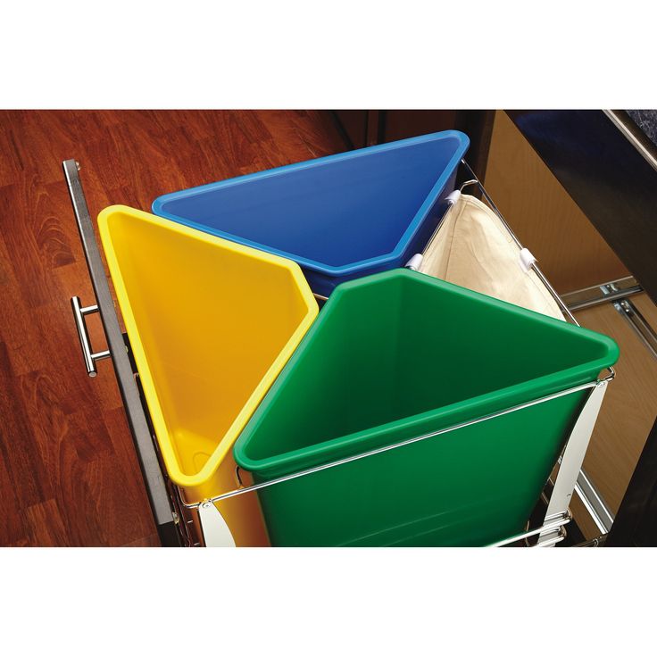 Rev-A-Shelf's recycling center will certainly help you organize and sort your paper, plastic, metal and glass. Heavy-duty design that features full-extension soft-close slides. Also features a door mount kit that will make your recycling efforts easier.