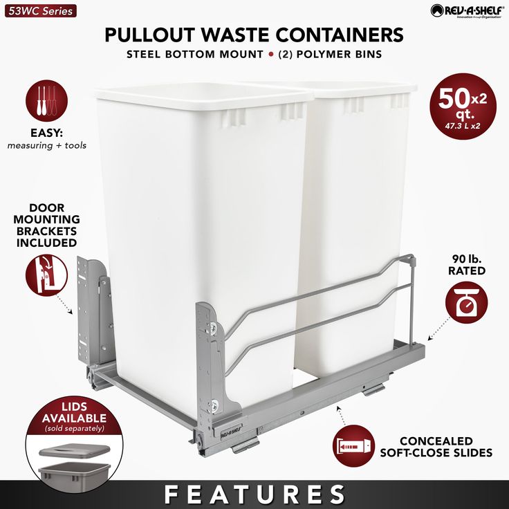 Rev-A-Shelf 50-Quart Plastic Soft Close Pull Out Trash Can