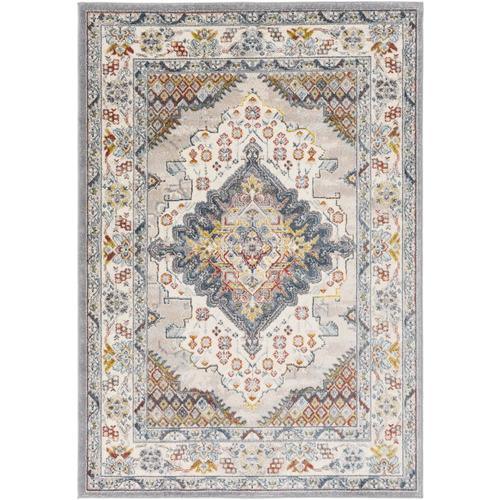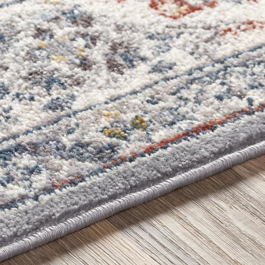 Features Medium Gray, Taupe, Pale Blue, Teal, Cream, Burnt Orange, Lime, Charcoal colors