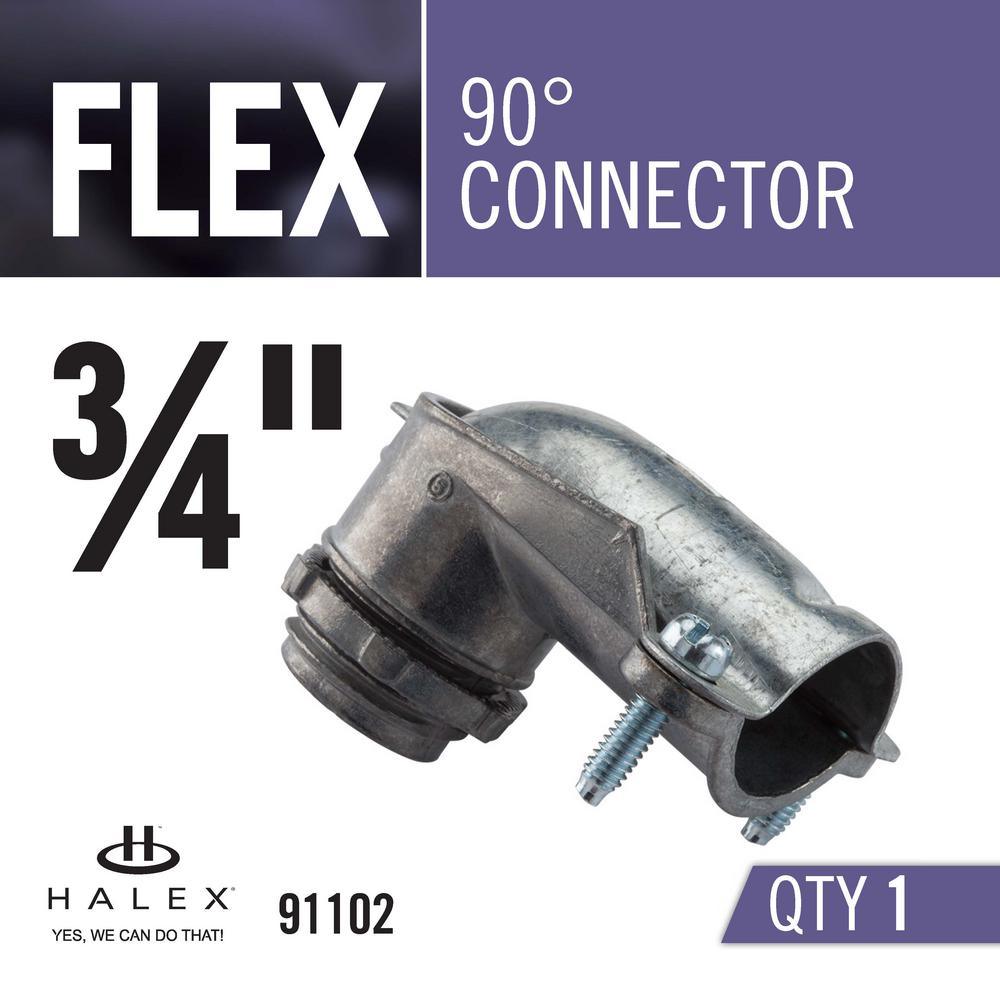 The 3/4 in. 90° Connector is handy for angular connection of flexible metallic conduit and metal-clad cable to a steel outlet box or other enclosure. It is die-cast of galvanized steel and suitable for indoor use. This connector meets UL and CSA requirements.