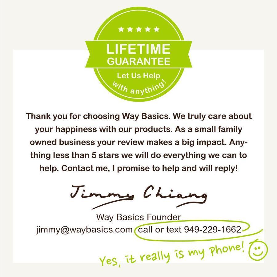 Lifetime guarantee; Happiness with product and service promised by our CEO and founder
