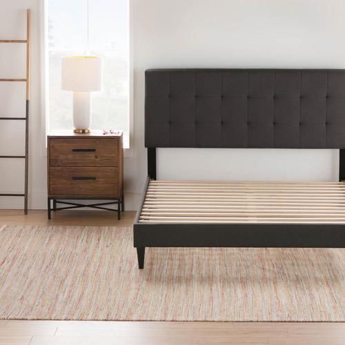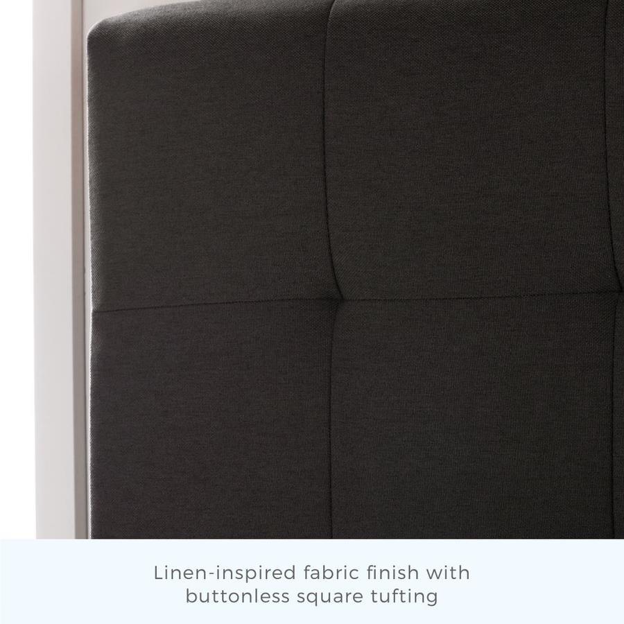 Headboard has a linen-inspired fabric finish with buttonless square tufting for a classy look