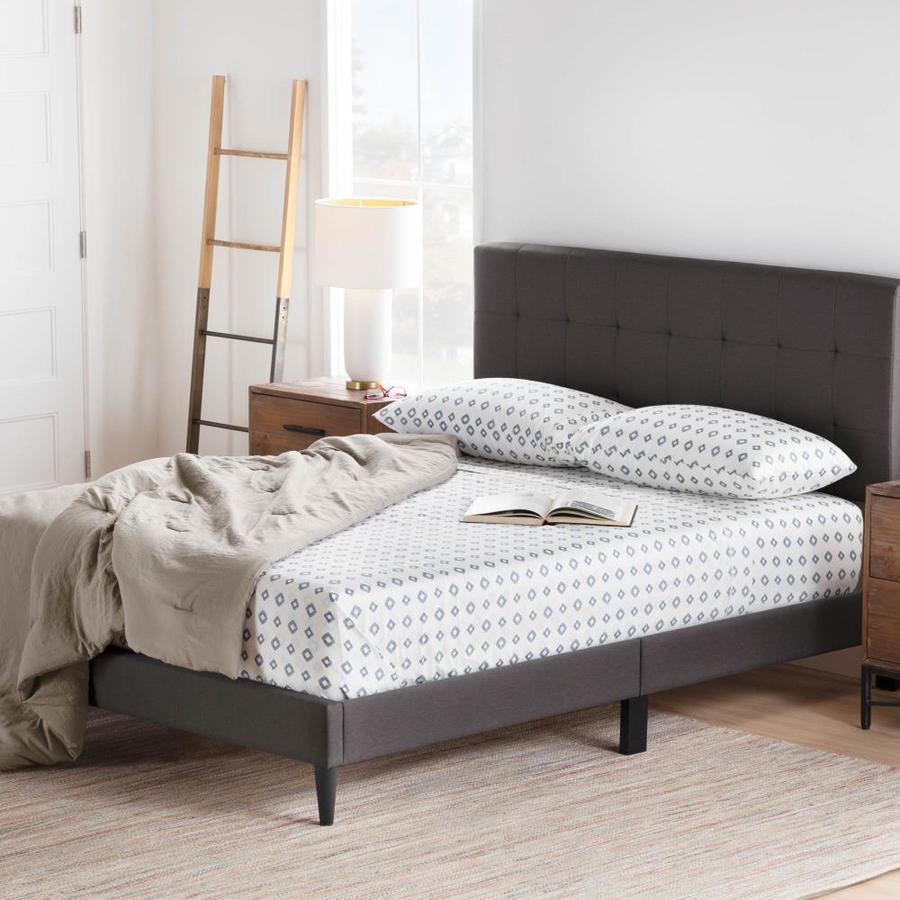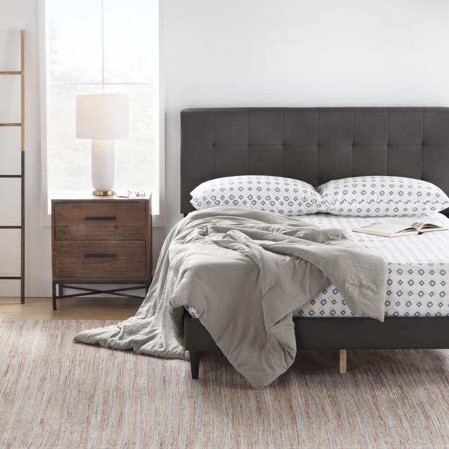 Bed frame is available in five neutral colors: Charcoal, Stone, Navy, Cream, and Black
