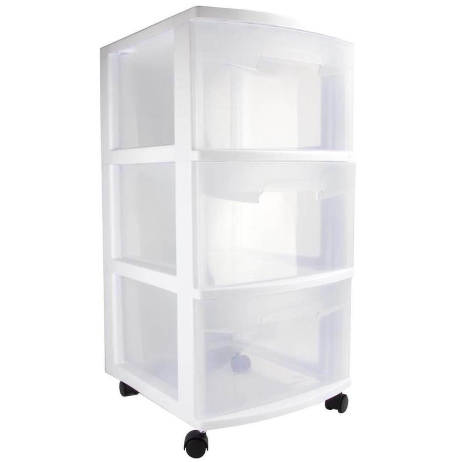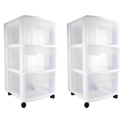 Sterilite Corporation 3 Compartment 3 Drawers White Stackable Wheeled Plastic Drawer