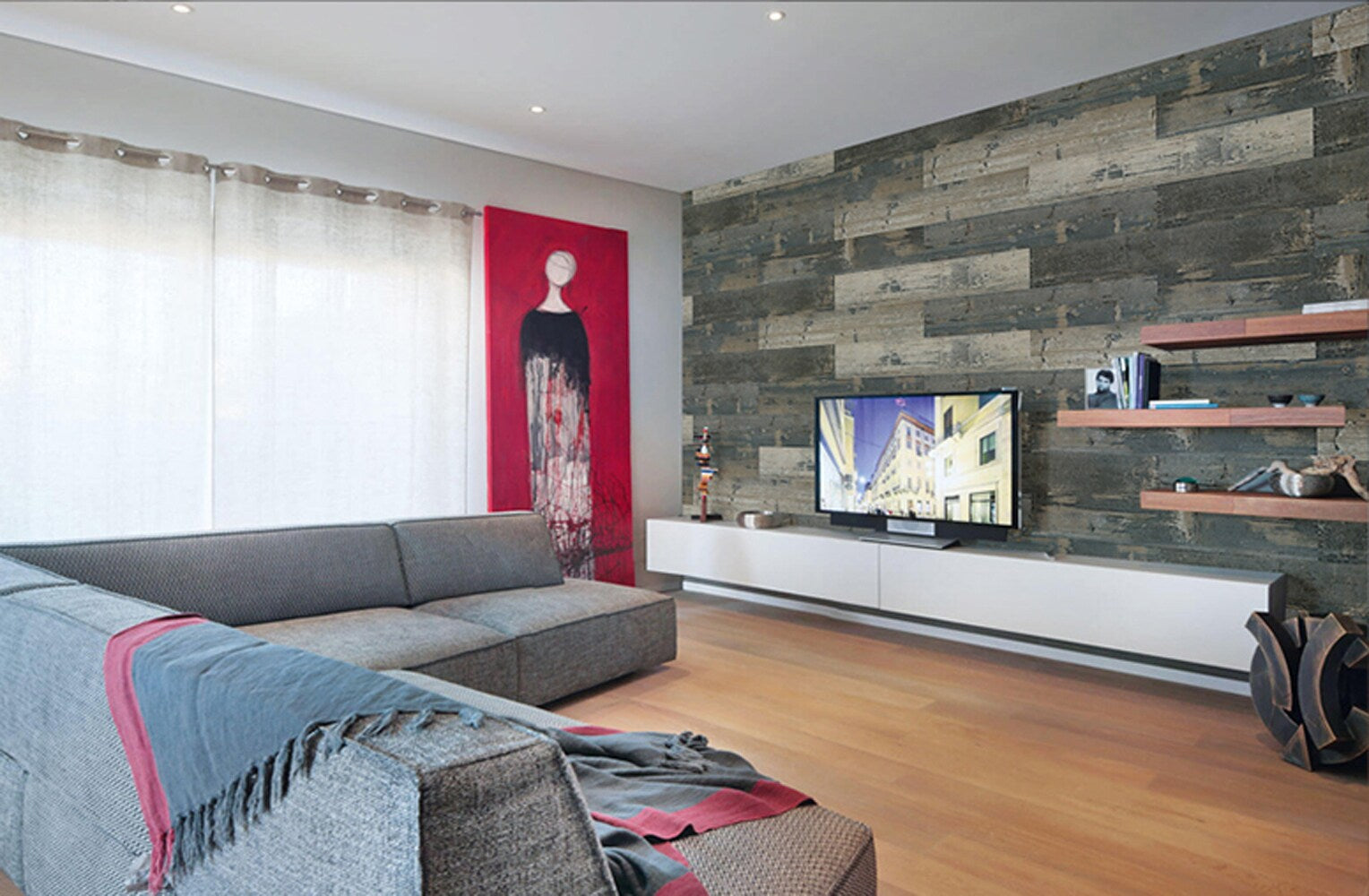 This high-variation plank infuses rooms with a poetic mix of weathered blues, warm taupes, and chalky whites—like sun-faded dock boards reborn. The painted wood texture brings soulful character and a layered, lived-in vibe. Run it up a feature wall or ground a sleek sofa with its moody palette for an artful contrast. It’s a chic essential that elevates everyday living with effortless, curated luxury.