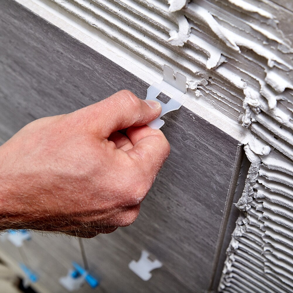 Q: How are the clips removed after setting? A: They feature a patented break-off point that snaps off cleanly once the tile is set.