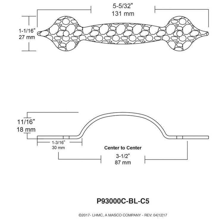 Add a rustic and farmhouse look to your cabinetry with the Liberty 3-1/2 in. Black Front-Mount Hammercraft Pull. It's hammered texture in the flat black finish gives it a rustic charm and casual feel. Ideal for accent use in both kitchens or bathrooms and perfect on furniture.