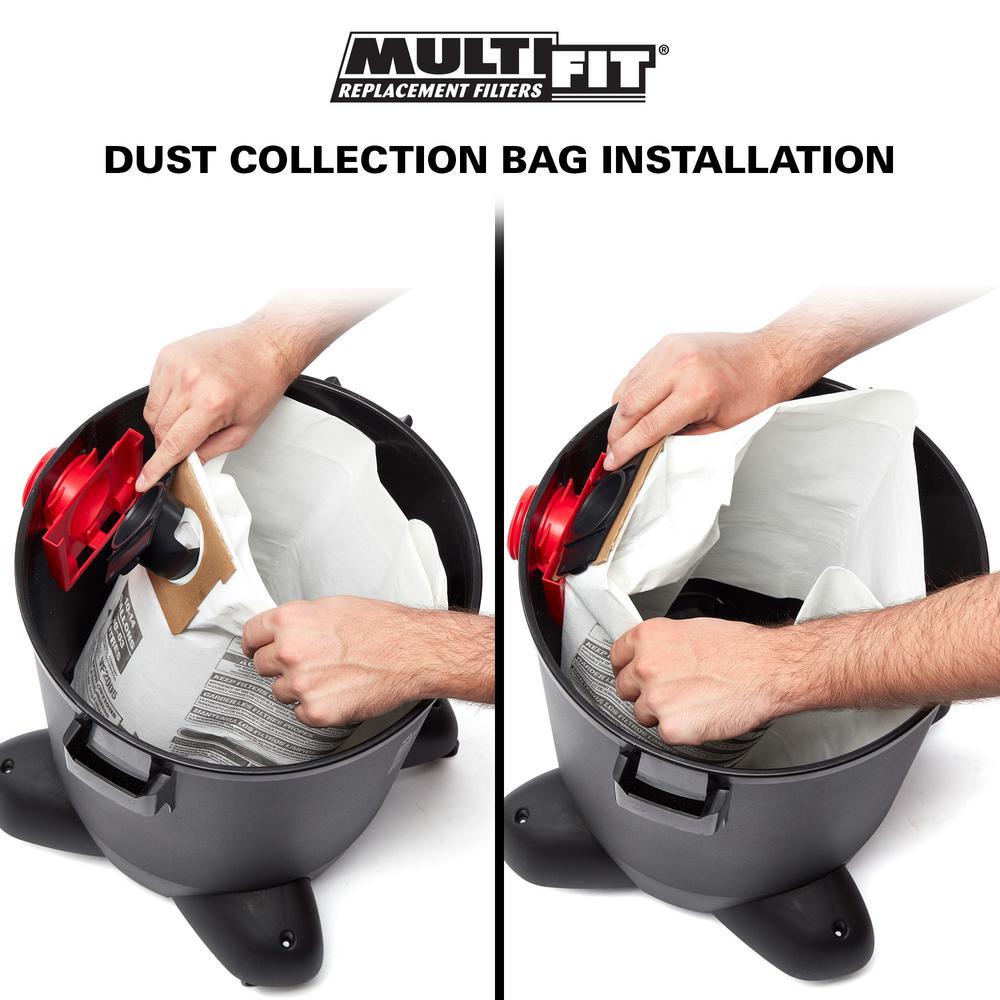 The Multi-Fit Dust Collection Bag is specifically designed for use with 10 Gal. to 14 Gal. Genie and Shop-Vac wet dry vacs. This bag filters general debris such as sawdust and dirt. Using these collection bags in your vacuum will keep your machine cleaner and allow your pleated cartridge filter to last longer.