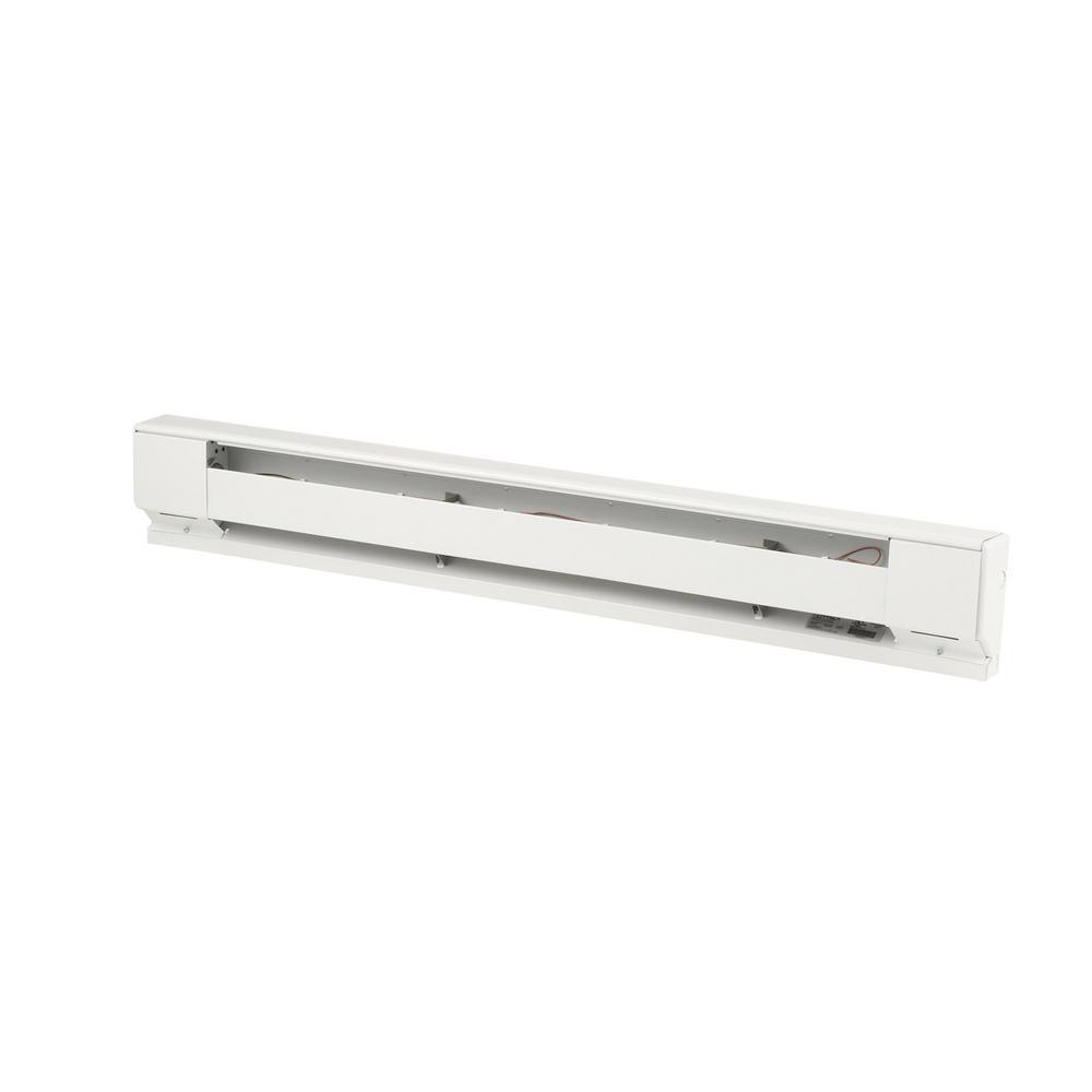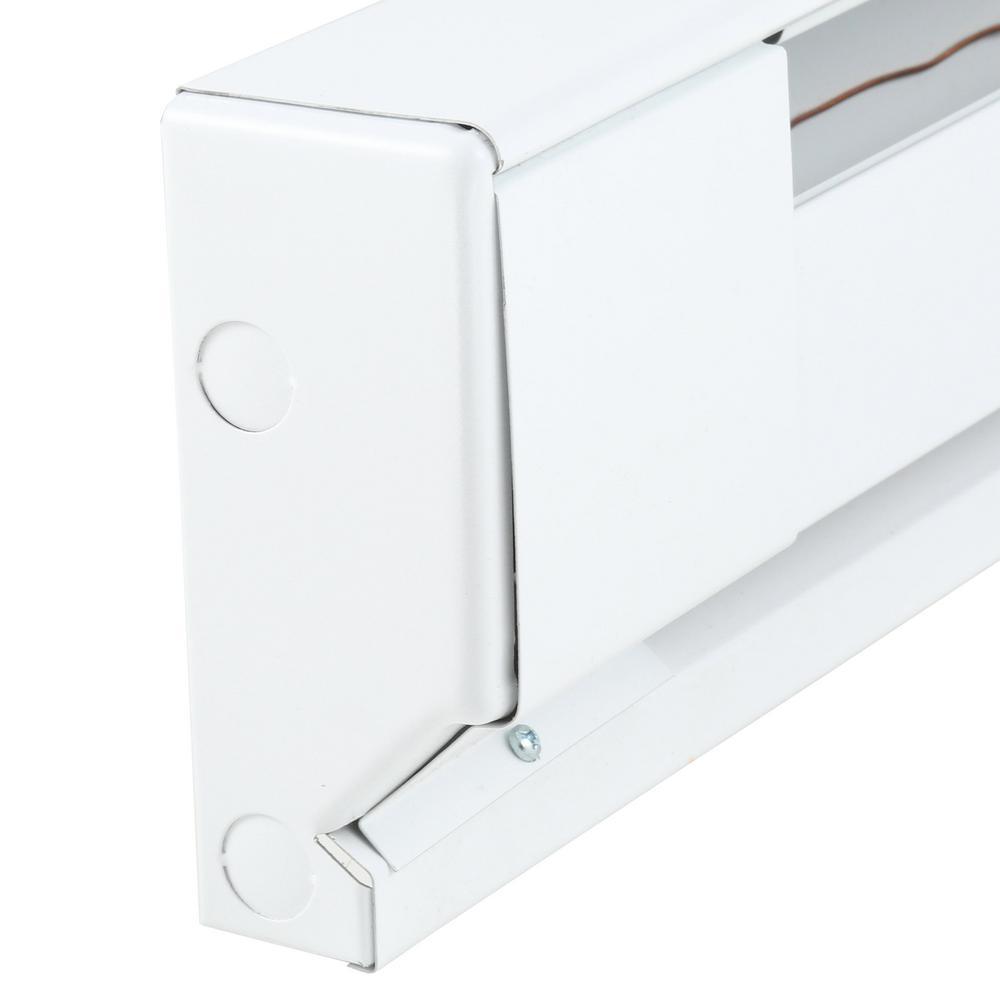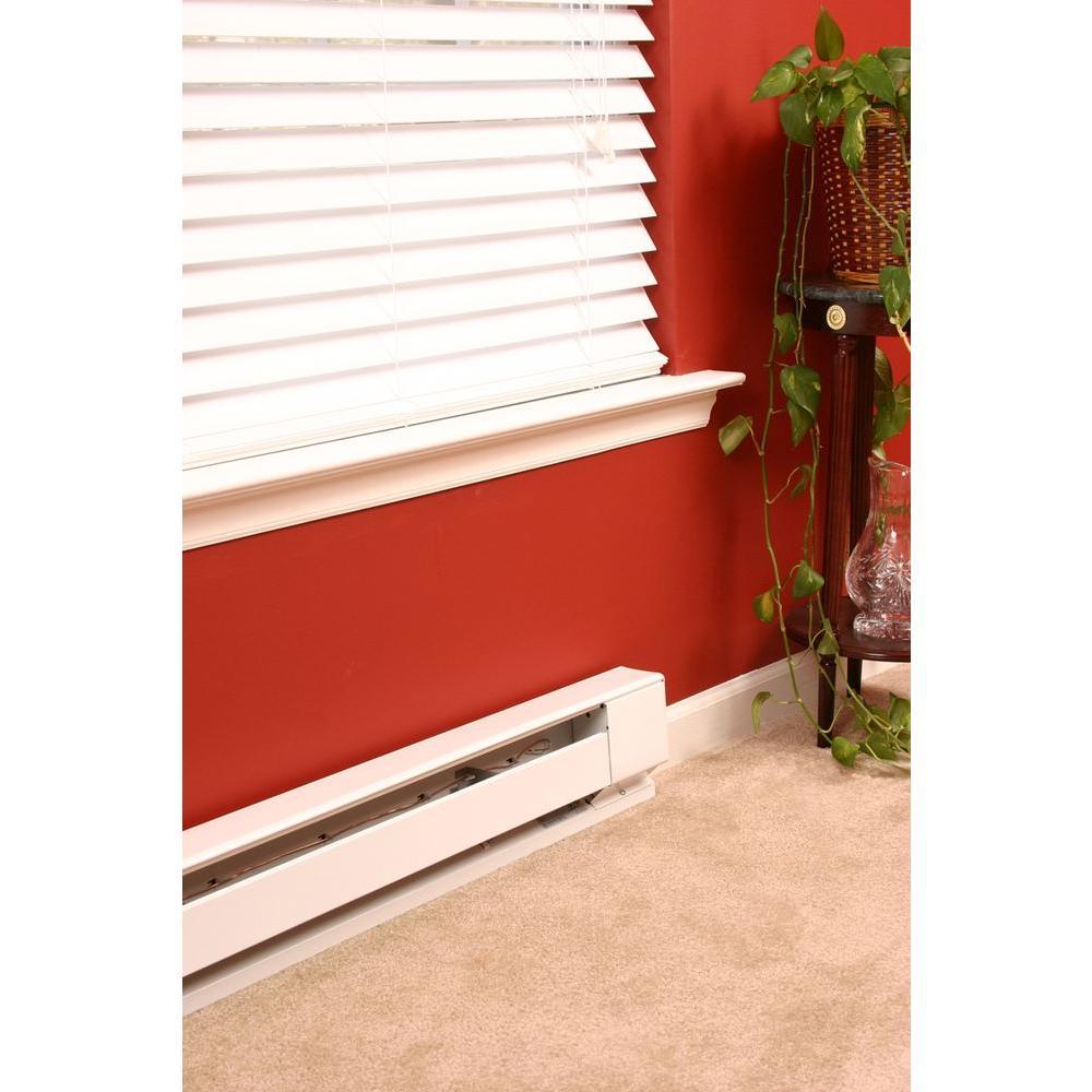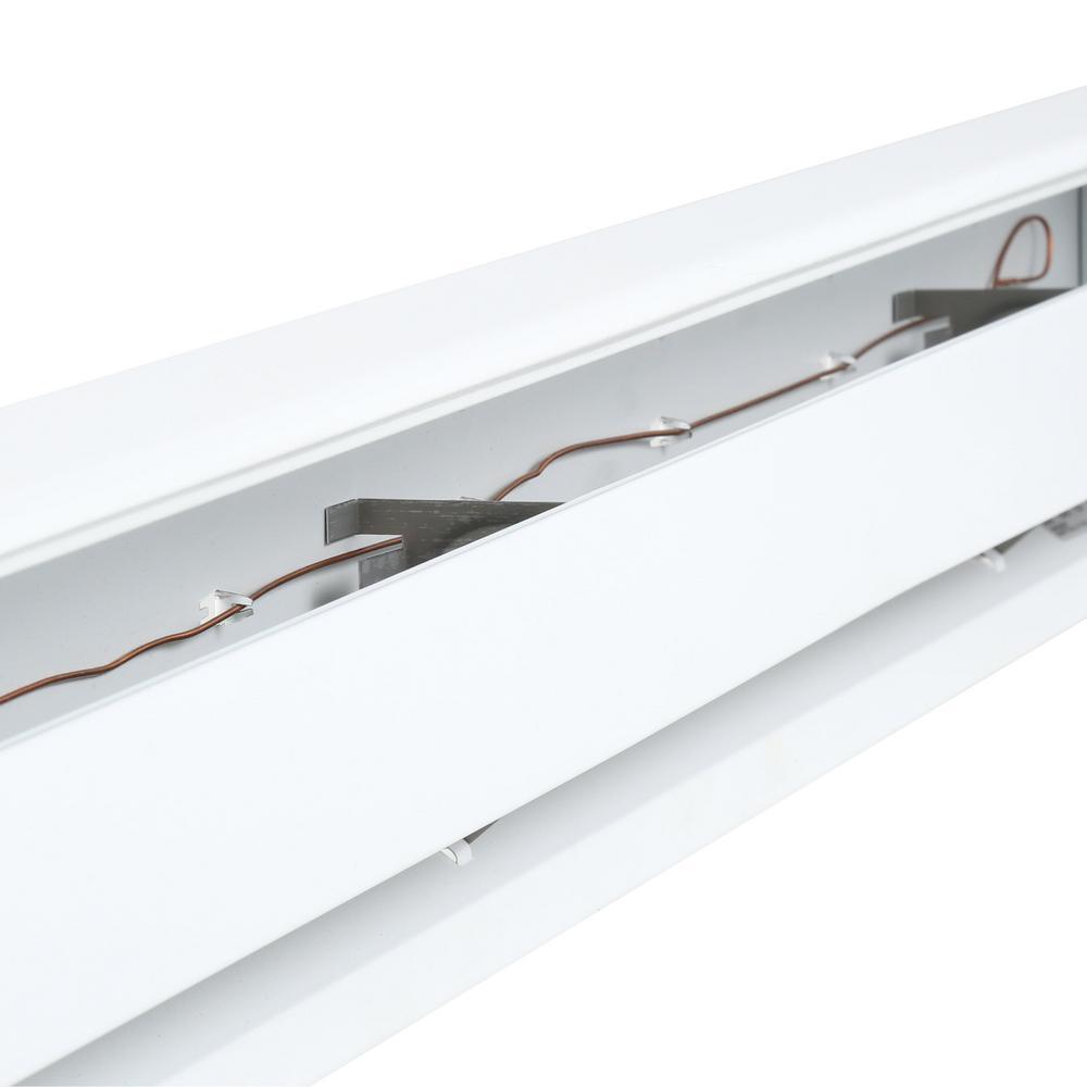 Experience quick warmth with the Fahrenheat Baseboard Convector F2544. This 48 inch, 1000-Watt electric heater operates without a fan, preventing dust and debris from circulating in the room. It is UL listed for safe installation on any floor type and features a thermal cutoff function to prevent overheating. This hydronic baseboard heater efficiently converts all incoming electric energy into heat, meeting Department of Energy standards. Its overheat protection feature ensures worry-free operation even when the air intake is blocked. Designed to blend seamlessly into any room, this UL listed baseboard heater can be mounted flush to the wall or directly on flooring, tile, or carpet. With easy installation capabilities and multiple wiring options, this hard-wired unit is a reliable and efficient choice for bedrooms, bathrooms, living rooms, and dens.