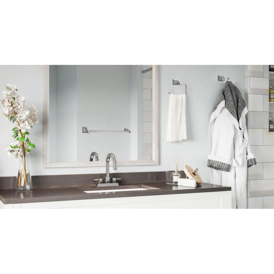 Includes: 24-in Towel bar, towel ring, toilet paper holder and robe hook