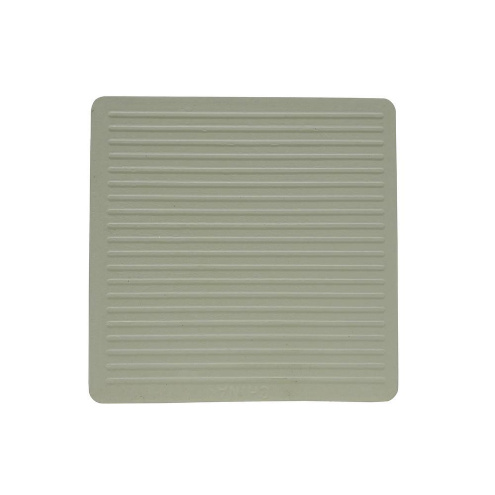 Solid rubber off-white blocks with recessed pockets to fit furniture feet and protect hard surface floors