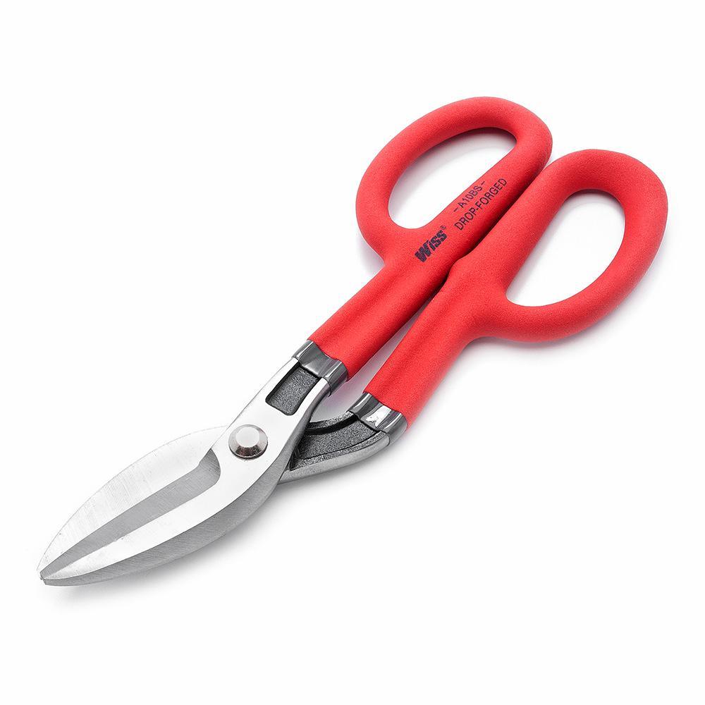 The Wiss Offset Tinner Snips are made from tempered steel for strength and durability. They cut from straight to wide left and right curves and their flat face works to efficiently guide the tool along straight lines. The large cushion grip handles allow for a secure grip even when wearing gloves.