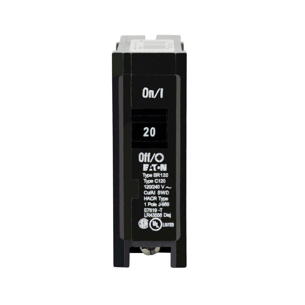 The Eaton Cutler-Hammer 20 Amp 1 in. Single-Pole Type BR Replacement Circuit Breaker is designed to protect house wires from overheating or causing a short-circuit. Single pole breaker applications include use with dishwashers, waste disposals, refrigerators, freezers, washing machines, televisions and window air conditioners. The UL-listed breaker is compatible with Westinghouse, Challenger and Bryant load centers and has a maximum load of 240-Volt.
