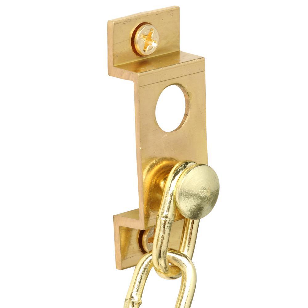 - This chain door guard is constructed of stamped steel with a brass-plated finish