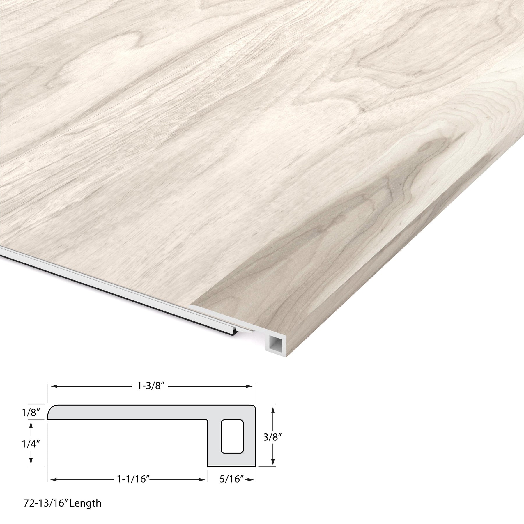 A: 0.31-in thick x 1.37-in wide x 72-in long.