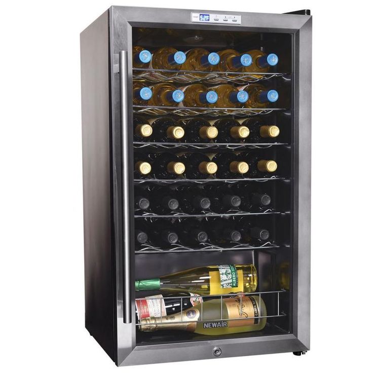 NewAir 33-Bottle Capacity Stainless Steel and Black Freestanding Wine Chiller