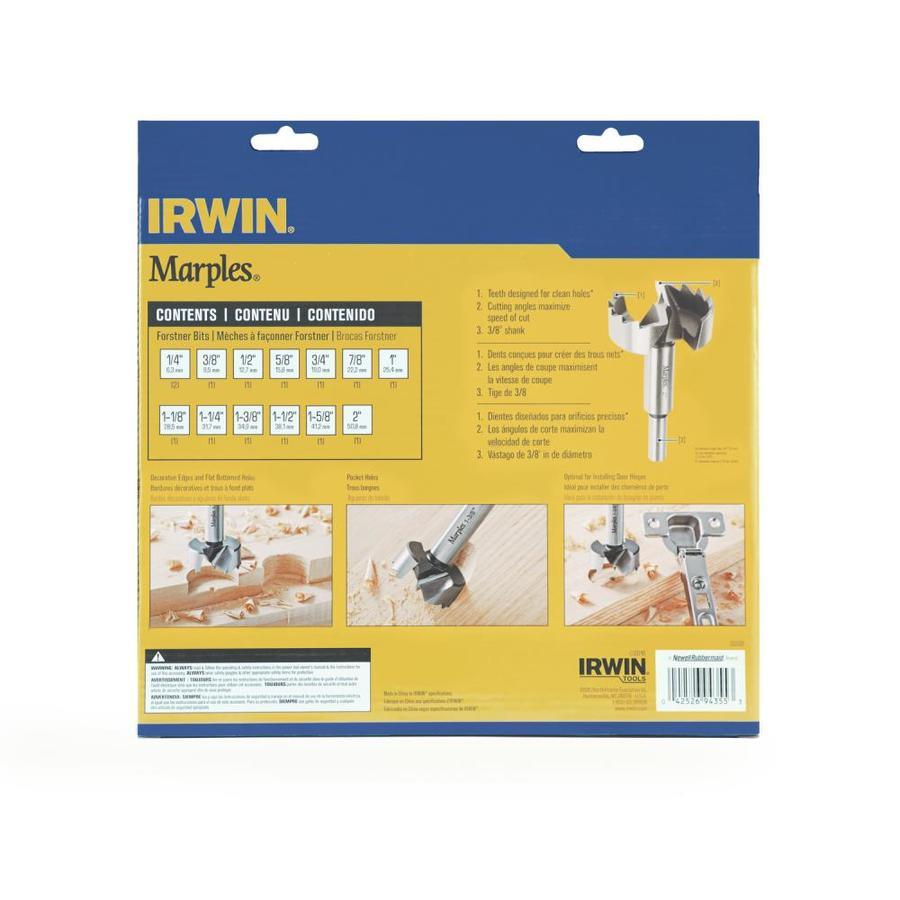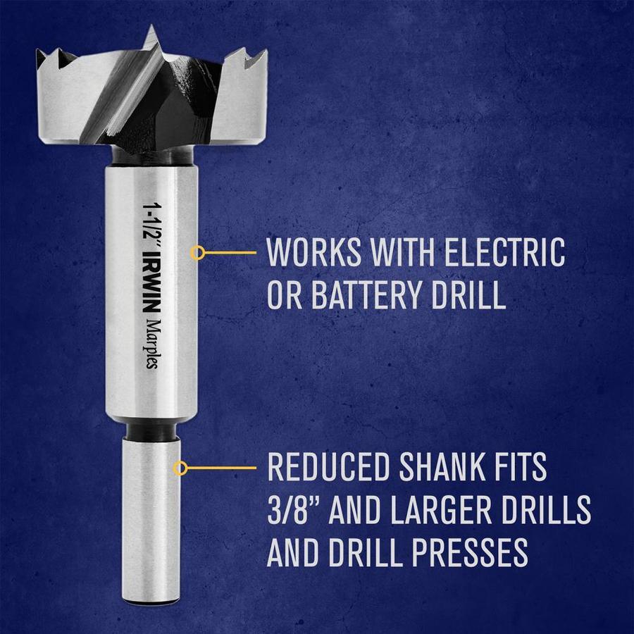 IRWIN Marples forstner bits drill clean and precise flat-bottomed holes and pocket holes quickly and easily Diameters 3/4-in and smaller: designed for clean holes Diameters larger than 3/4-in: teeth designed for clean holes Cutting angles maximize speed of cut Reduced shank fits 3/8-in and larger drills and drill presses