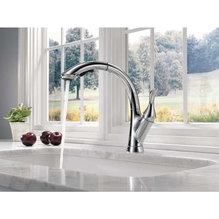 Delta Linden Chrome 1-Handle Deck-Mount Pull-Out Handle Kitchen Faucet (Deck Plate Included)