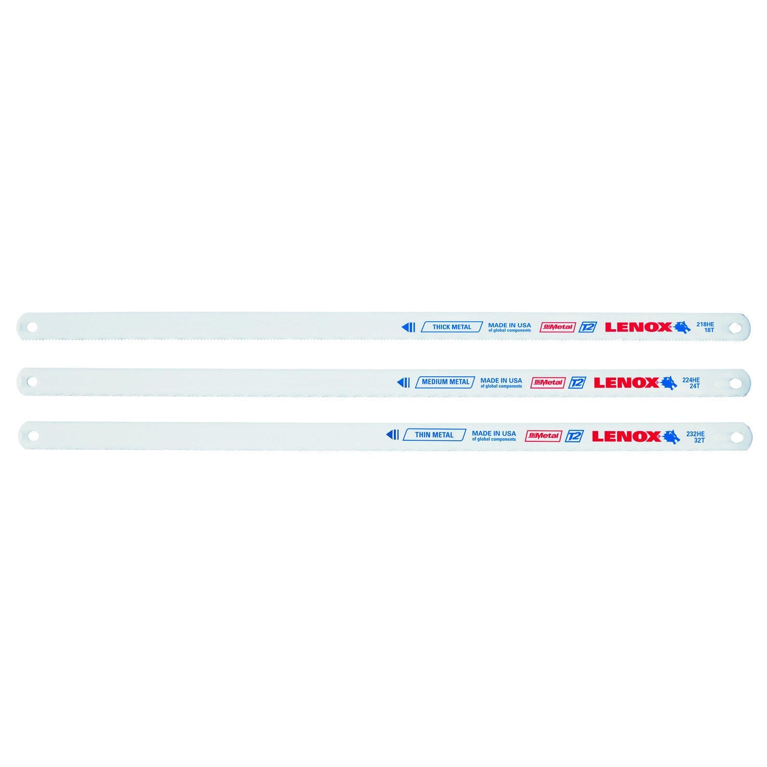 Durable LENOX 12-in bi-metal hacksaw blades deliver fine-finish cuts across a range of metals. The 3-pack includes 18, 24, and 32 TPI blades for thick, medium, and thin metals, offering flexibility and longer life with LENOX’s advanced blade design.